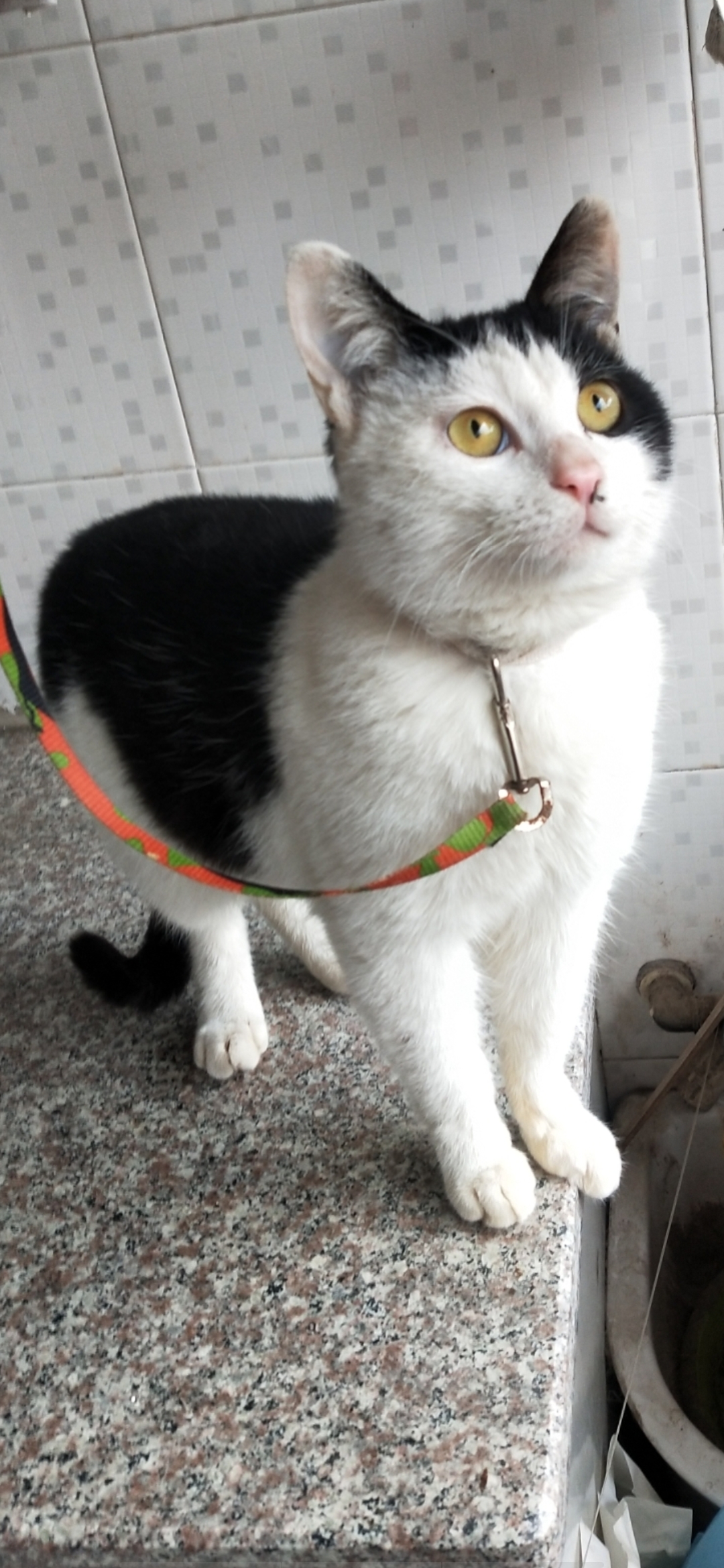 第一只,白底黑花,公猫,6个月大,性格特别好,亲人、粘人、乖巧可爱。免费绝育,每年免费打疫苗(狂犬、妙三多)。